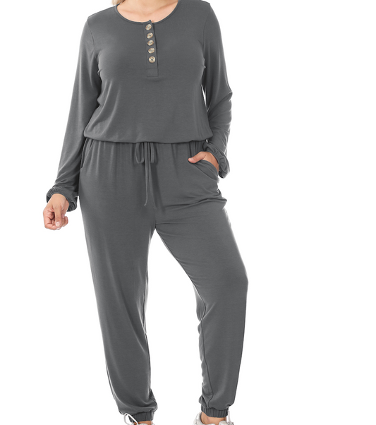Curvy Long Sleeve Jogger Jumpsuit with POCKETS